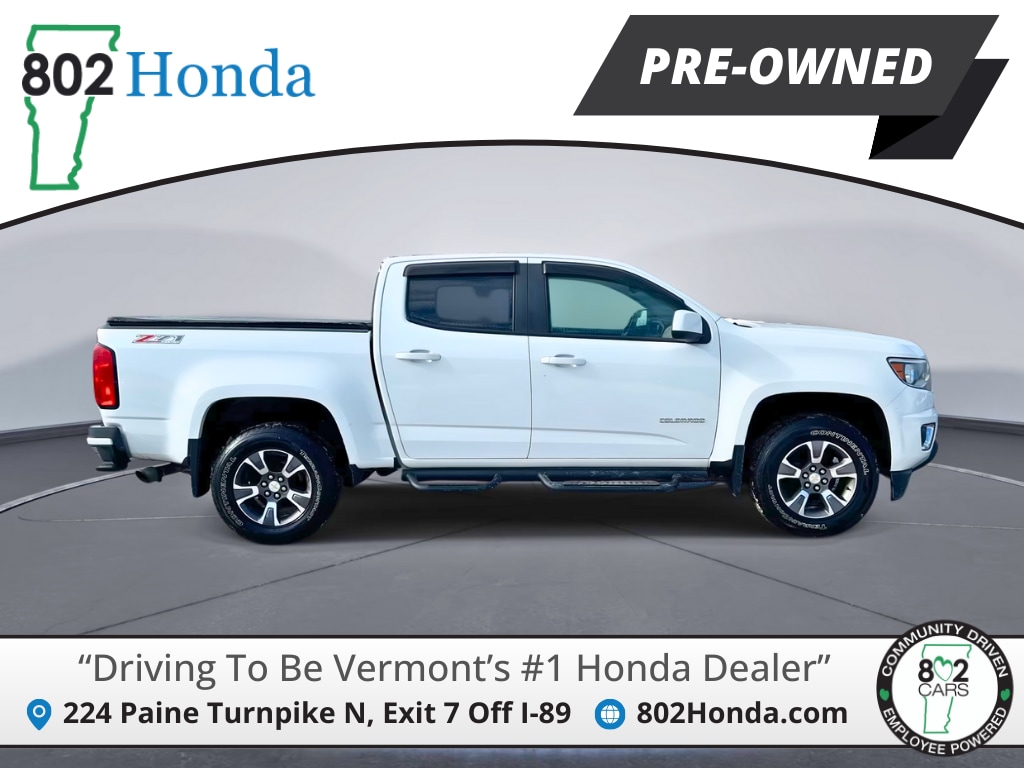 802 Honda is proud to present you with another True Market Priced Pre-Owned Vehicle. Transparent Pricing Of $ !! This 2017 Chevrolet Colorado Z71 is loaded with the following Factory Options: 4WD Preferred Equipment Group 4Z7, 4WD, 3.42 Rear Axle Ratio, 4-Way Power Front Passenger Seat Adjuster, 4-Wheel Disc Brakes, 6 Speakers, 6-Speaker Audio System Feature, ABS brakes, Air Conditioning, Alloy wheels, AM/FM radio: SiriusXM, Apple CarPlay, Auto-dimming Rear-View mirror, Automatic temperature control, Bose Premium 7-Speaker Audio System Feature, Bumpers: body-color, Cloth/Leatherette Seat Trim, Compass, Delay-off headlights, Driver 4-Way Power Seat Adjuster, Driver door bin, Driver vanity mirror, Dual front impact airbags, Dual front side impact airbags, Electronic Stability Control, Emergency communication system: OnStar Guidance, Exterior Parking Camera Rear, Front anti-roll bar, Front Bucket Seats, Front Center Armrest, Front fog lights, Front License Plate Kit, Front reading lights, Front wheel independent suspension, Fully automatic headlights, Heated Driver & Front Passenger Seats, Heated front seats, Illuminated entry, Low tire pressure warning, Occupant sensing airbag, Outside temperature display, Overhead airbag, Overhead console, Panic alarm, Passenger door bin, Passenger vanity mirror, Power door mirrors, Power Driver Lumbar Control Seat Adjuster, Power driver seat, Power Passenger Lumbar Control Seat Adjuster, Power passenger seat, Power steering, Power windows, Premium audio system: Chevrolet MyLink, Radio data system, Radio: AM/FM Stereo w/8" Diagonal Color Touch Nav., Radio: AM/FM Stereo w/8" Diagonal Color Touch Screen, Rear reading lights, Rear seat center armrest, Rear step bumper, Rear window defroster, Remote keyless entry, Security system, SiriusXM Satellite Radio, Speed control, Speed-sensing steering, Steering wheel mounted audio controls, Tachometer, Telescoping steering wheel, Tilt steering wheel, Traction control, Trip computer, Variably intermittent wipers, Wheel Locks, and Wheels: 17" x 8" Dark Argent Metallic Cast Alloy!!