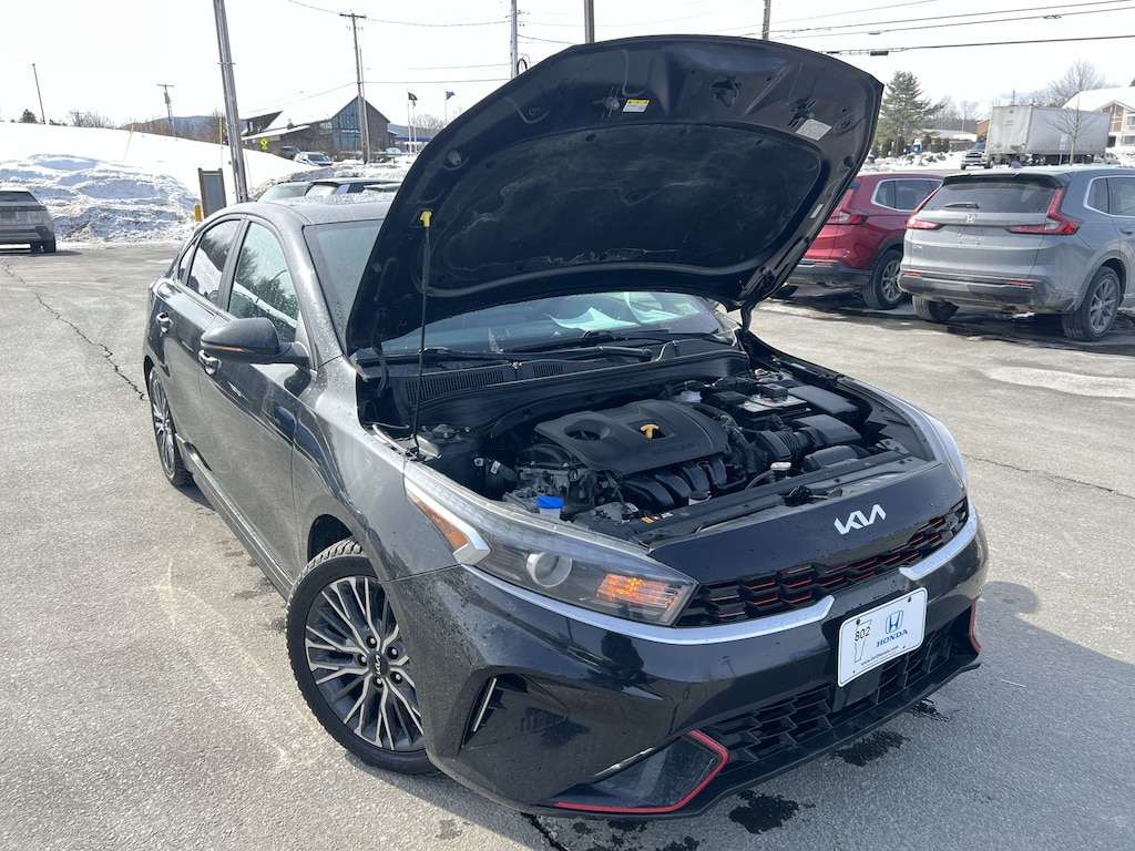 802 Honda is proud to present you with another True Market Priced Pre-Owned Vehicle. Transparent Pricing Of $ !! This 2022 Kia Forte GT-Line is loaded with the following Factory Options: GT-Line Premium Package (Electronic Parking Brake (EPB) w/Auto Hold, Forward Collision Avoidance-Assist - Cyclist, Highway Driving Assist (HDA), Navigation-Based Smart Cruise Control (NSCC), Overhead LED Front & Rear Reading Lamps, Power Sunroof, Radio: AM/FM/MP3 harman/kardon Premium Audio System, Smart Cruise Control, and Wireless Charging), 4-Wheel Disc Brakes, 6 Speakers, ABS brakes, Air Conditioning, Alloy wheels, AM/FM radio: SiriusXM, Apple CarPlay & Android Auto, Auto High-beam Headlights, Automatic temperature control, Brake assist, Bumpers: body-color, Cargo Mat, Carpet Floor Mat, Cloth & Leatherette Seat Trim, Delay-off headlights, Driver door bin, Driver vanity mirror, Dual front impact airbags, Dual front side impact airbags, Electronic Stability Control, Emergency communication system: UVO eServices, Exterior Parking Camera Rear, Front anti-roll bar, Front Bucket Seats, Front Center Armrest, Front dual zone A/C, Front fog lights, Front reading lights, Front Sport Seats, Front wheel independent suspension, Fully automatic headlights, Heated door mirrors, Illuminated entry, Leather Shift Knob, Leather steering wheel, Low tire pressure warning, Navigation System, Occupant sensing airbag, Outside temperature display, Overhead airbag, Overhead console, Panic alarm, Passenger door bin, Passenger vanity mirror, Power door mirrors, Power steering, Power windows, Radio data system, Radio: UVO Link Audio System, Rear Bumper Applique, Rear seat center armrest, Rear window defroster, Remote keyless entry, Security system, Speed control, Split folding rear seat, Spoiler, Sport steering wheel, Steering wheel mounted audio controls, Tachometer, Telescoping steering wheel, Tilt steering wheel, Traction control, Trip computer, Turn signal indicator mirrors, Variably intermittent wipers, and Wheels: 17" Graphite Finish Alloy!!