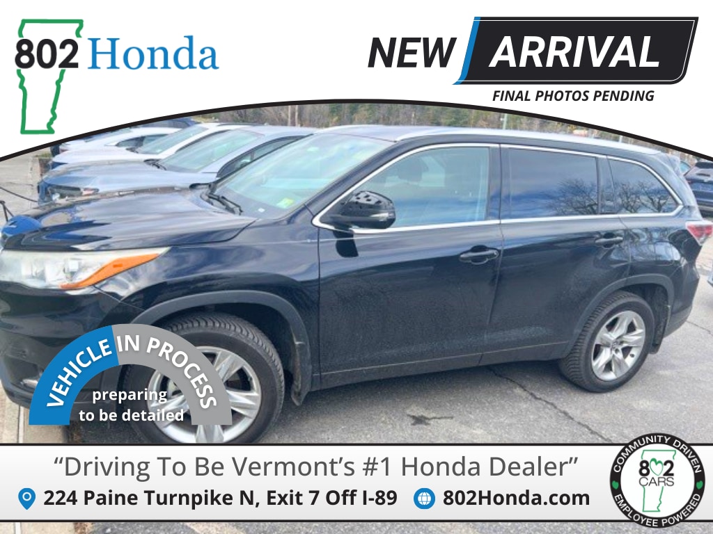 802 Honda is proud to present you with another True Market Priced Pre-Owned Vehicle. Transparent Pricing Of $ !! This 2016 Toyota Highlander Limited is loaded with the following Factory Options: AWD, ABS brakes, Alloy wheels, Electronic Stability Control, Front dual zone A/C, Heated door mirrors, Heated front seats, Heated/Ventilated Front Bucket Seats, Illuminated entry, Low tire pressure warning, Navigation System, Power Liftgate, Power moonroof, Remote keyless entry, and Traction control AWD, ABS brakes, Alloy wheels, Electronic Stability Control, Front dual zone A/C, Heated door mirrors, Heated front seats, Heated/Ventilated Front Bucket Seats, Illuminated entry, Low tire pressure warning, Navigation System, Power Liftgate, Power moonroof, Remote keyless entry, Traction control, 12 Speakers, 3rd row seats: split-bench, 4-Wheel Disc Brakes, 4.154 Axle Ratio, Air Conditioning, AM/FM radio: SiriusXM, Auto-dimming Rear-View mirror, Automatic temperature control, Brake assist, Bumpers: body-color, CD player, Delay-off headlights, Driver door bin, Driver vanity mirror, Dual front impact airbags, Dual front side impact airbags, Exterior Parking Camera Rear, Four wheel independent suspension, Front anti-roll bar, Front Bucket Seats, Front Center Armrest, Front fog lights, Front reading lights, Fully automatic headlights, Garage door transmitter, Knee airbag, Leather Shift Knob, Memory seat, Occupant sensing airbag, Outside temperature display, Overhead airbag, Overhead console, Panic alarm, Passenger door bin, Passenger vanity mirror, Perforated Leather Seat Material, Power door mirrors, Power driver seat, Power passenger seat, Power steering, Power windows, Radio: Entune Premium JBL Audio w/Nav & App Suite, Rear air conditioning, Rear anti-roll bar, Rear Parking Sensors, Rear reading lights, Rear window defroster, Rear window wiper, Reclining 3rd row seat, Roof rack: rails only, Security system, Speed control, Speed-sensing steering, Split folding rear seat, Spoiler, Steering wheel mounted audio controls, Tachometer, Telescoping steering wheel, Tilt steering wheel, Trip computer, Turn signal indicator mirrors, Variably intermittent wipers, Ventilated front seats, and Wheels: 19" 5-Spoke Chromtec Alloy!!